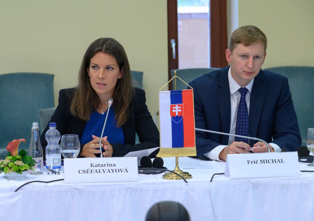 A magyar delegáció - The delegation of Hungary dr. Ballester-Bólya Boglárka, az Igazságügyi Minisztérium európai uniós kapcsolatokért felelős helyettes államtitkára - dr. Boglárka Ballester-Bólya, Deputy State Secretary for European Union Affairs at the Ministry of Justice Dr. Hörcsik Richárd bizottsági elnök - Committee Chair dr. Richárd Hörcsik Dr. Hörcsik Richárd bizottsági elnök - Committee Chair dr. Richárd Hörcsik dr. Mosóczi László, az Innovációs és Technológiai Minisztérium közlekedésért felelős államtitkára - dr. László Mosóczi, State Secretary for Transportation of the Ministry of Innovation and Technology dr. Mosóczi László, az Innovációs és Technológiai Minisztérium közlekedésért felelős államtitkára - dr. László Mosóczi, State Secretary for Transportation of the Ministry of Innovation and Technology Piotr Apel, a lengyel Szejm Európai ügyek bizottságának alelnöke - Piotr Apel, Vice-Chair of the European Union Affairs Committee of the Polish Sejm Katarína Cséfalvayová, a szlovák Nemzeti Tanács Európai ügyek bizottságának alelnöke - Katarína Cséfalvayová, Vice-Chair of the European Affairs Committee of the Slovak National Council Jiří Kobza, a cseh Képviselőház Európai ügyek bizottságának alelnöke - Jiří Kobza, Vice-Chair of the Committee on European Affairs of the Czech Chamber of Deputies Jaroslav Doubrava, a cseh Szenátus EU-bizottsága tagja és Jiří Kobza, a cseh Képviselőház Európai ügyek bizottságának alelnöke - Jaroslav Doubrava, Member of the Committee on EU Affairs of the Czech Senate and Jiří Kobza, Vice-Chair of the Committee on European Affairs of the Czech Chamber of Deputies Bágyi Péter szállodaigazgató előadása - The contribution of Hotel Manager Péter Bágyi A záródokumentum aláírása - Signing the conclusions Az aláírt záródokumentum - The signed conclusions Csoportkép - Family photo